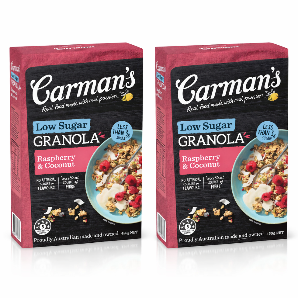 Combo of 2 Carman's Low Sugar (Raspberry & Coconut) granola,450g