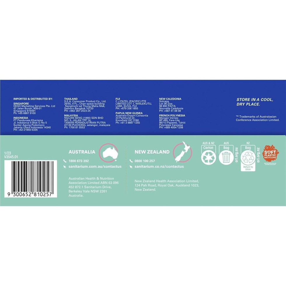 Nourish your little ones with Sanitarium Weet-Bix Little Kids Essentials, a specially formulated breakfast cereal designed for growing children. This award-winning cereal combines 9 essential vitamins and minerals with prebiotics to support your child's healthy growth and development milestones. Made with three wholegrains - wheat, rye, and sorghum - it provides 97% wholegrain natural goodness and delivers 31% of kids' daily fibre needs. The cereal offers five key benefits: supporting strong bones, teeth and muscles; enhancing brain and cognitive function; promoting natural immune defences ; providing energy for active learning and play; and maintaining healthy tummy regularity. With no added salt, low sugar content, and free from artificial colors, flavours, and preservatives, this 400g pack represents a thoughtful choice for parents. Proudly made in Australia using at least 98% Australian ingredients, this breakfast cereal maintains high nutritional standards while delivering a wholesome start to your child's day.